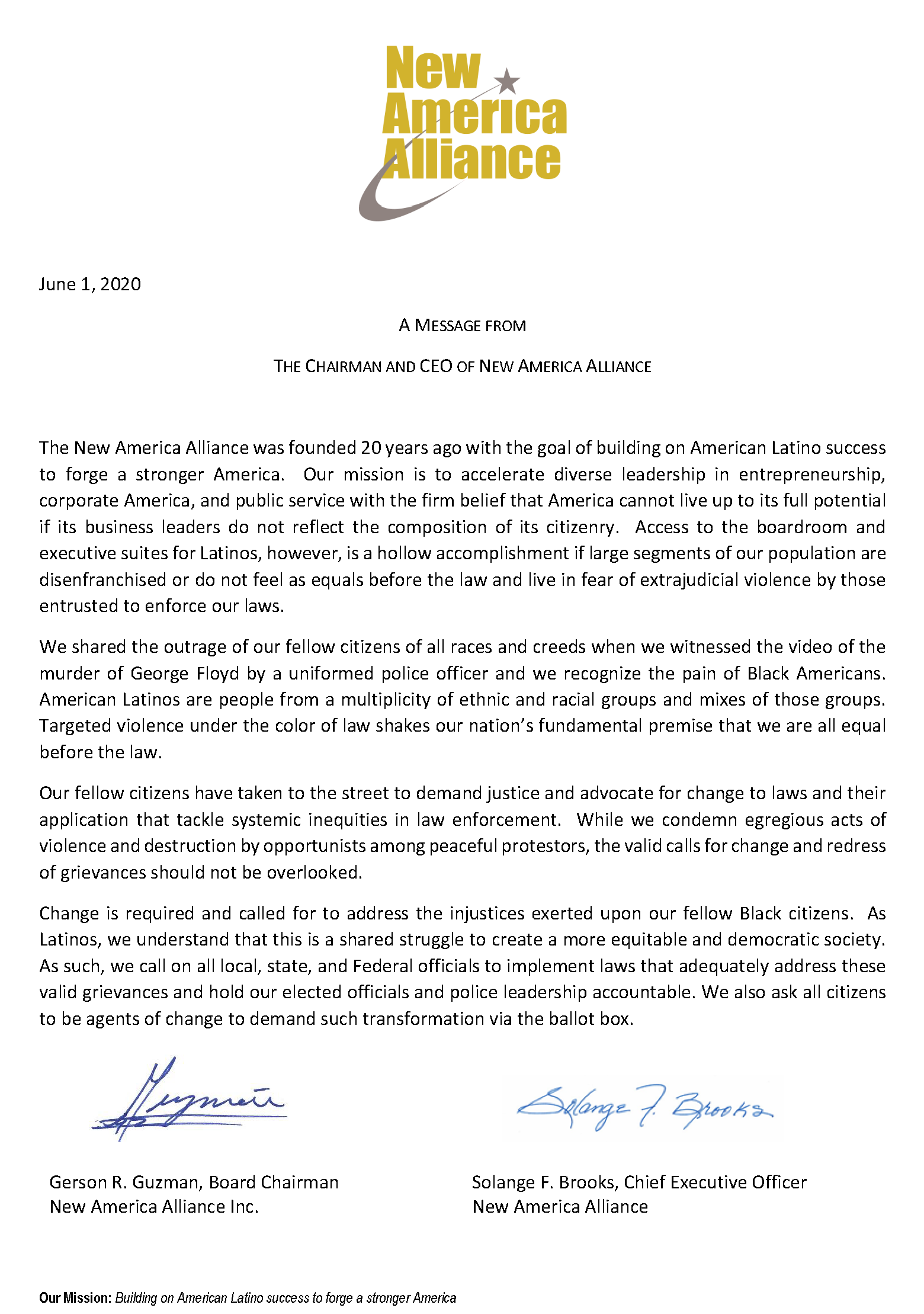 March 24, 2021 A MESSAGE FROM THE CHAIRMAN AND CEO OF NEW AMERICA ALLIANCE The New America Alliance was founded 21 years ago with the goal of building on American...