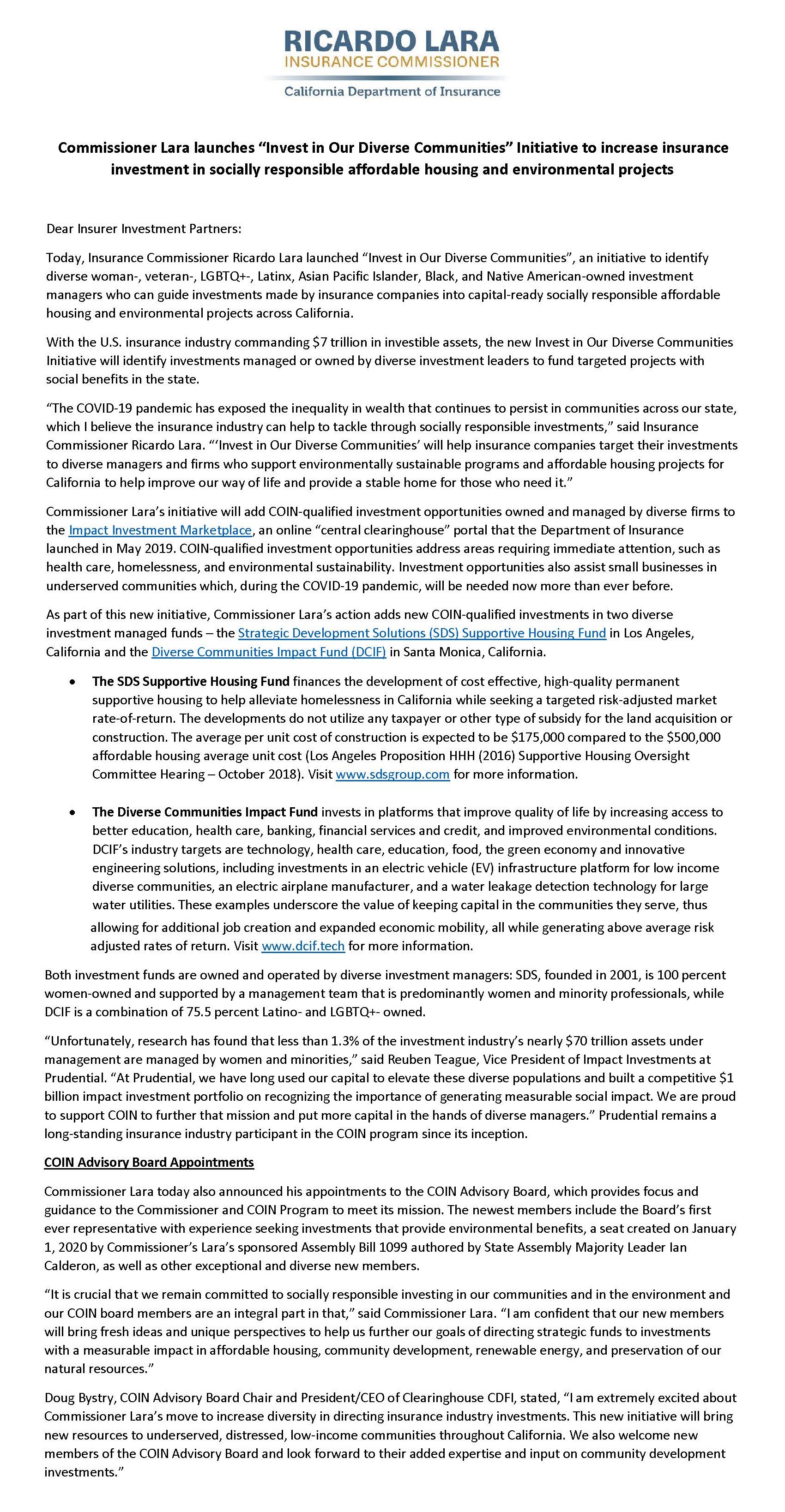 The Managing Partners and team of the Diverse Communities Impact Fund (DCIF) are very proud to be announced as one of the first of two debut funds in California State...